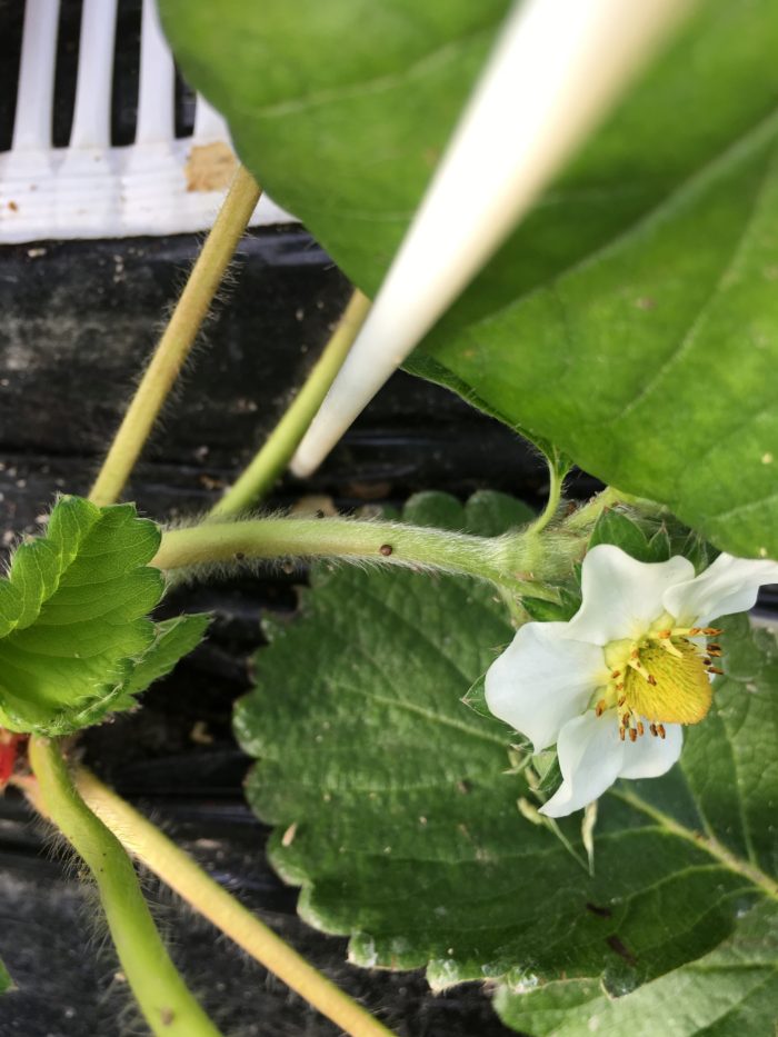 アブラムシは苺を加害することはなく、排泄物の甘露(糖分)によってもたらされる果実の汚れやスス病が発生するため害虫扱いされています。
