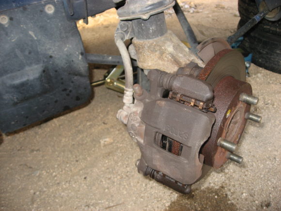 原因はブレーキパットの消耗と推定し、検査せずパットを購入7500円。一応、工賃を聞くと6000円との事なので、やっぱり自分で行うことに。