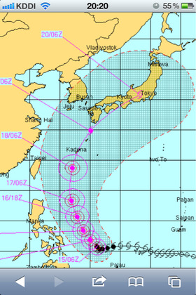 四国沖通過。とりあえず荒天準備。